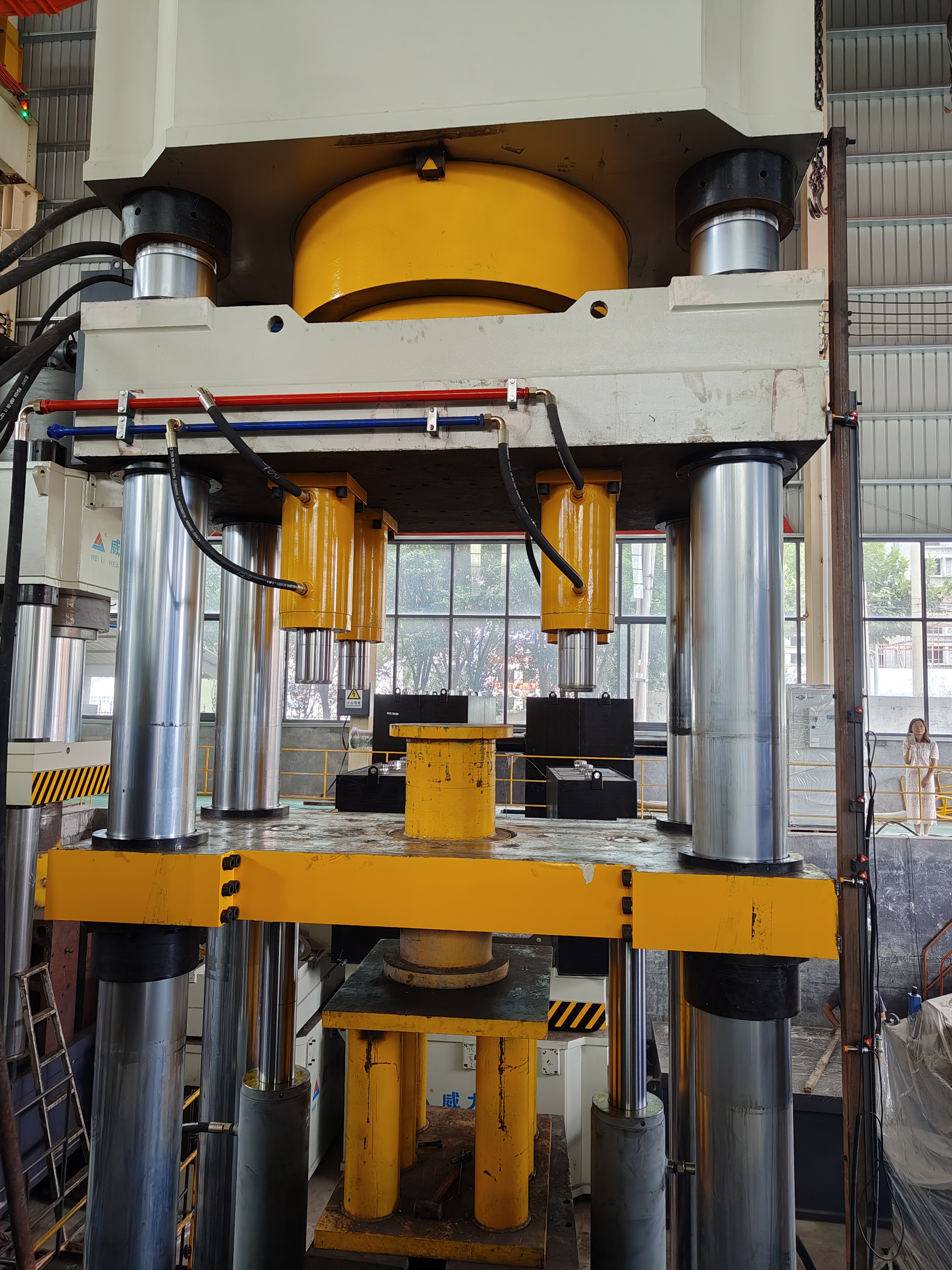 1. 高壓力:該液壓機最大壓力可達2000噸,能夠?qū)饘氽釄暹M行高強度的壓制和成型,確保產(chǎn)品的密實性和穩(wěn)定性。